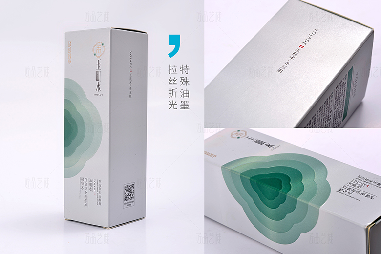 網(wǎng)印冰花網(wǎng)印工藝要求印刷茶葉包裝盒是在高平滑度的紙板表面覆蓋了一層高光澤的真空鍍鋁膜,覆膜質(zhì)量是決定冰花網(wǎng)印質(zhì)量的關(guān)鍵因素之一。覆膜的表面光澤度對產(chǎn)品質(zhì)量有很大的影響,表面光澤度越高,反射越強,冰花效果越佳,花紋更閃、更亮。由于印刷后的印品要立即進行UV固化,這就要求覆膜有一定的耐光性、耐熱性,即在整個固化過程中,要求覆膜不能鼓泡,更不能與底層紙板產(chǎn)生分離。