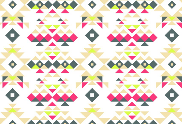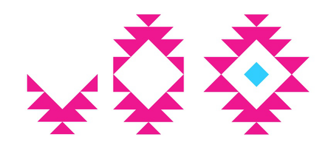 讓我們研究一下在紡織品和被子模式中使用的常見(jiàn)設(shè)計(jì)。將三個(gè)三角形排列在一起,使其角落接觸在中間添加第四個(gè)三角形以在頂部創(chuàng)建平坦邊緣。再添加四個(gè)三角形,交替方向,從而在中心形成一個(gè)直角。在另一側(cè)添加兩個(gè)倒置的三角形以擴(kuò)展該角度。