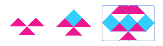 根據(jù)需要組合元素。如果你正在使用網(wǎng)格,你將能夠輕松地對(duì)齊正方形和三角形。如果不使用“對(duì)齊”面板以進(jìn)行對(duì)稱設(shè)計(jì)。