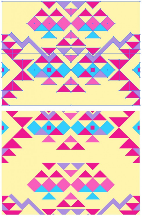 小組激活你的模式元素。在設(shè)計(jì)的最右側(cè)使用矩形重疊您的組。確保將矩形邊緣與設(shè)計(jì)中心對(duì)齊。選擇矩形和組,然后在“路徑查找器”面板中單擊“分割”。刪除與矩形重疊的所有對(duì)象。