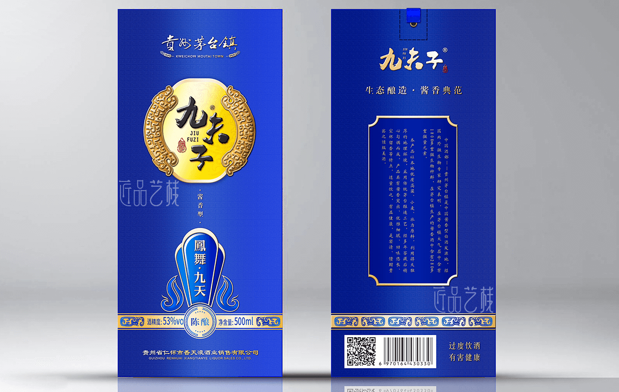 貴州茅臺(tái)鎮(zhèn)白酒品牌九夫子酒,選用茅臺(tái)鎮(zhèn)本地優(yōu)質(zhì)糯高粱和小麥,取水于赤水河水,具有醬香突出、優(yōu)雅細(xì)膩、空杯留香持久等獨(dú)特風(fēng)格。在九夫子酒品牌產(chǎn)品包裝設(shè)計(jì)定做中,采用一言九鼎、鳳舞九天、九五之尊系列分類,設(shè)計(jì)統(tǒng)一的品牌圖標(biāo),并根據(jù)每個(gè)系列的特點(diǎn)和定價(jià),設(shè)計(jì)不同包裝形態(tài)、元素和色彩的包裝酒盒,形成統(tǒng)一的品牌傳播形象和提升產(chǎn)品價(jià)值。